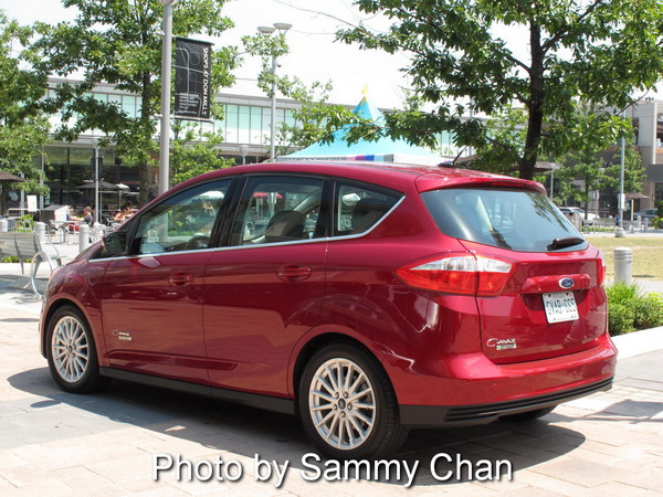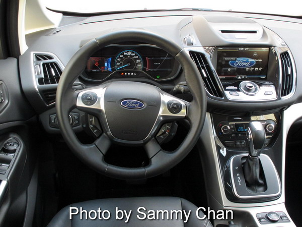 NRC fuel consumption figures of C-MAX Energi: HV mode City 4.3 / Highway 4.7 / Combined 4.5; EV mode 1.9 Le/100 km. NRC also quote a gas-plus-electric driving range of 1,221 km before you empty both the lithium-ion battery and the 52.9-litre fuel tank.