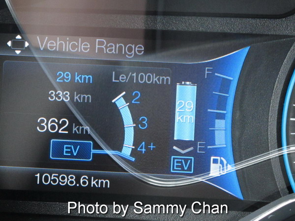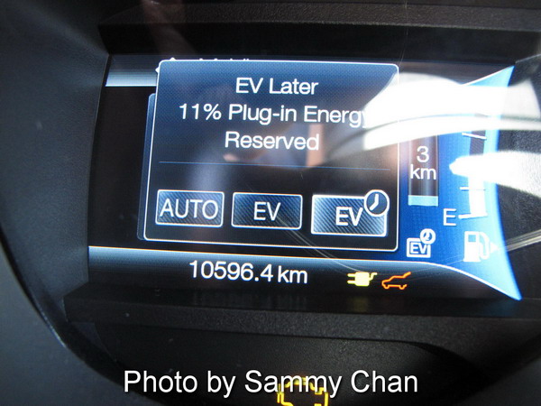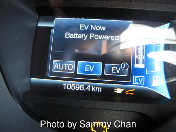 According to NRC, the C-MAX Energi can achieve as low as 1.9 Le/100 km when operating in pure electric mode. You might ask "Shouldn't it be Zero (0) fuel consumption in that mode?". Yes, if your electric fill-up is free like in my case using the one at RH Civic parking lot. NRC did take your hydro bill cost into consideration and has a formula for converting your hydro cost to "gasoline" money. Each Le or litres equivalent as defined by NRC contains the energy equivalent of 8.9 kWh of electricity, in other words, a distance of 100 km city driving would cost you $4.77 if consuming gasoline but would cost you only $2.58 on your home hydro bill if running the Energi on EV mode.