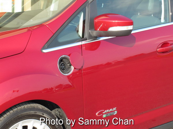 Styling-wise, there's no discernible differences between the C-MAX Energi and C-MAX hybrid, both are classified as Mid-size vehicles by NRC (Surprisingly, the larger Chevrolet Volt is deemed a Compact vehicle due to its smaller interior volume). An extra "fuel" filler cap on the left front fender is the only visible que.