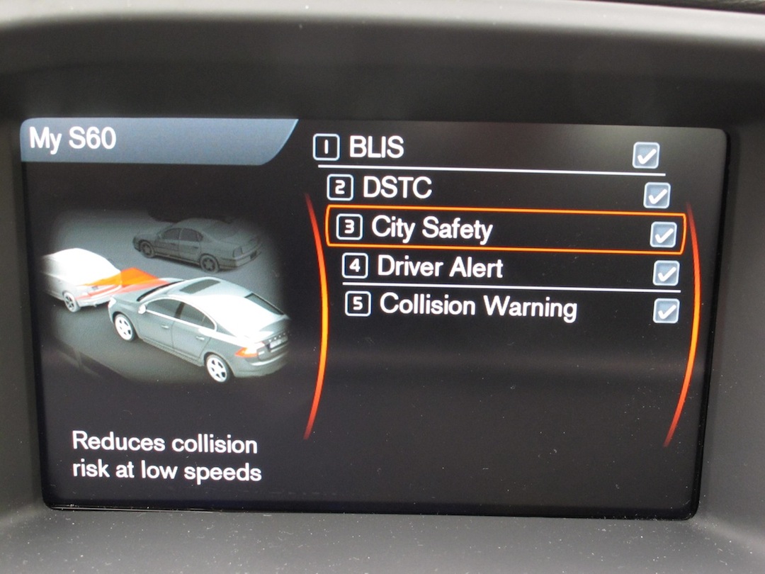 Speaking of safety technology this is where Volvo shines above the rest. I would not be surprised if Volvo in Swedish meant “guardian angel”. With more safety technology and safety awards than one can imagine, this S60 turns into a rolling cushion. Blind Spot Detection, Lane Changing Aids, Front/Rear Park Assists, Lane Departure Warnings, and a Collision Warning System that uses cameras and radars to determine if you are approaching a vehicle too quickly and will provide a visual and audible warning to the driver. If needed, the system will autonomously brake the car to prevent any frontal collision that is about to occur. There are even cameras on the car that detect speed limit signs on the road and display them on the instrument cluster.